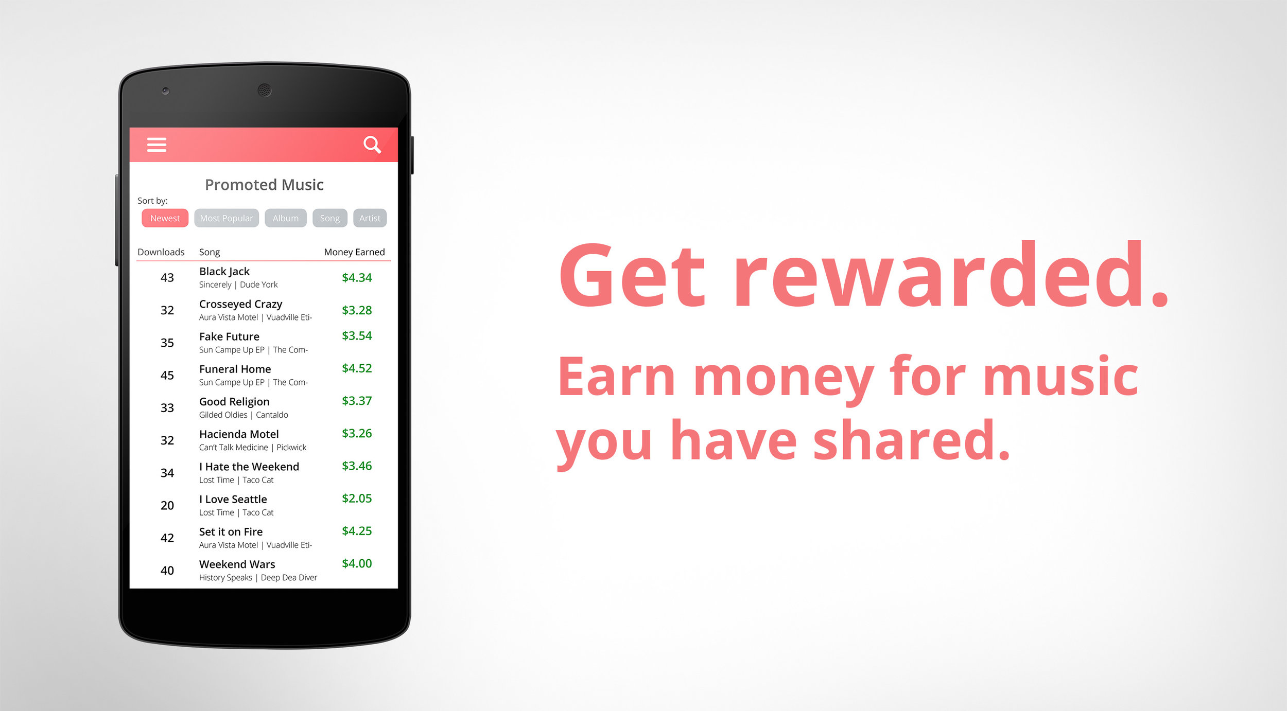 Spread is an app that rewards fans for sharing their favorite music. It is aimed towards artists that are not signed to a label and lets the artist get free advertisingand promotion through their fans.